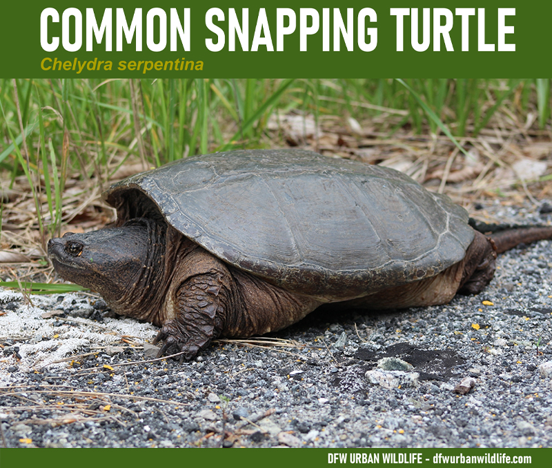 Common Snapping turtles range widely the across the eastern two-thirds of Texas, and are often observed in the Dallas/Fort Worth area