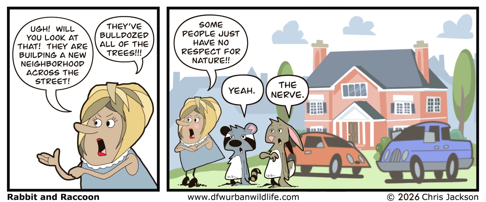 Progress, growth, and the development that results are unavoidable. And even though wildlife has the resiliency to power through the disruption that urbanization brings, there is still plenty of room for people to do better. Accommodating urban wildlife is really not that difficult in most cases. The willingness to do so begins with valuing and appreciating nature. Knowledge and understanding are the keys to magnanimity. Taking the time to consider a situation from an animals point of view is an exercise that is certainly worth doing from time to time!