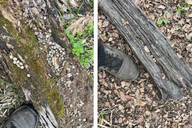 When I finally got out to service the cameras late this winter, I made a point of searching the immediate area for Swamp Rabbit sign. It didn’t take me long to find what I was looking for. In several locations I found evidence of Swamp Rabbit latrines on elevated deadfalls. With that, I had the last bit of corroboration I needed to make a reasonable case. All indications are that we have a healthy population of Swamp Rabbits in this part of Denton County!