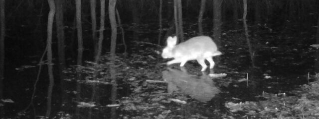 For a little over the past year, I have been running a long term trail camera survey deep in an area of the Dallas/Fort Worth Trinity River bottoms located in Denton County. Early on in the effort I began to notice photographs of what appeared to be unusually large cottontails coming in on the regular. I kept a close eye on this development as new pictures continued to be uploaded month after month. I carefully compared the pictures of rabbits with those of other forest critters taken in the same locations, and soon began to suspect that these were not just Eastern Cottontail I was recording. Many of the pictures showed rabbits that were competing in size with opossums, skunks, armadillos, and sometime even raccoons.